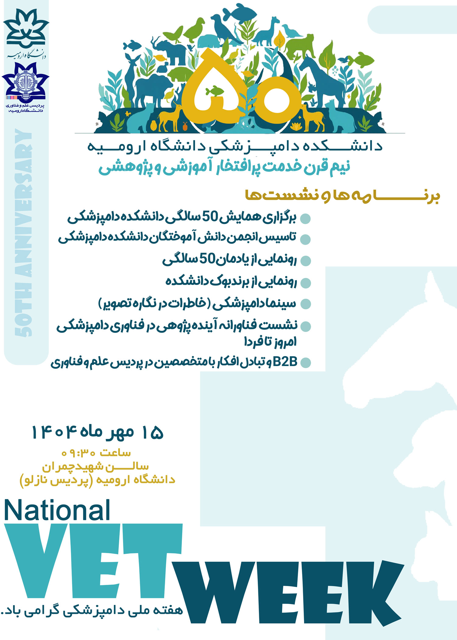 اطلاعیه همایش 50 سالگی دانشکده دامپزشکی دانشگاه ارومیه اطلاعیه همایش 50 سالگی دانشکده دامپزشکی دانشگاه ارومیه ارسال شده توسط : m.bagheri در تاریخ : يكشنبه, 13. مهر 1404 - 12:29تعداد مشاهده:216