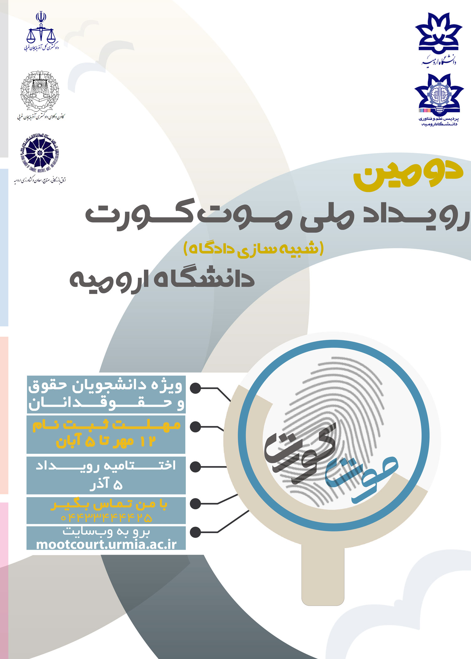 این رویداد که بستری برای حضور و رقابت به عنوان وکیل در یک دادگاه تمرینی را فراهم میکند در تاریخهای 4 و 5 آذر ماه سال جاری در محل پردیس علم و فناوری دانشگاه ارومیه برگزار خواهد شد.