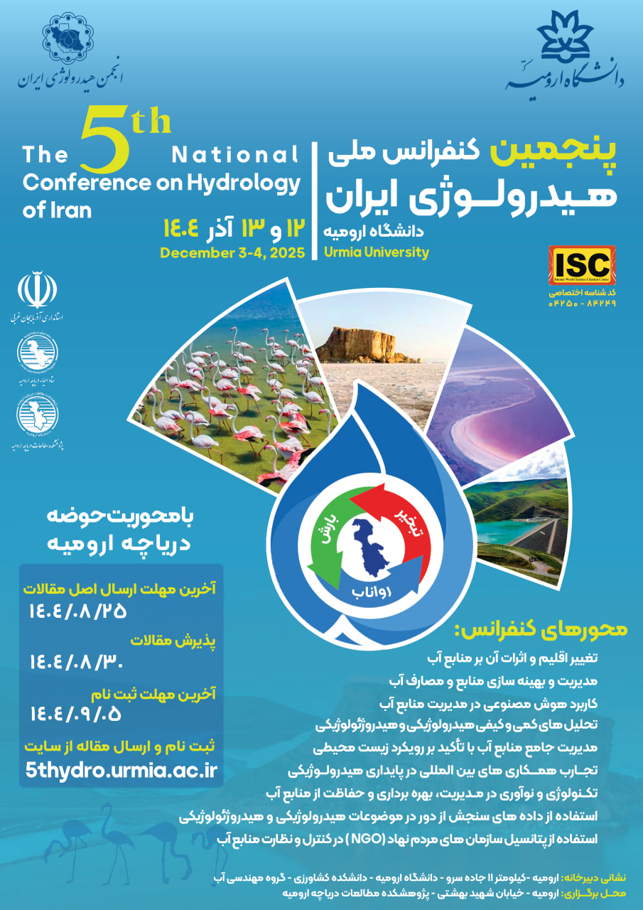 پنجمین همایش ملی "هیدرولوژی ایران" با محوریت ویژه احیای دریاچه ارومیه، به عنوان یکی از مهمترین رویدادهای علمی و تخصصی در حوزه مدیریت منابع آب و محیطزیست در این منطقه و در این بازه زمانی میباشد. این همایش با هدف بررسی چالشهای پیشروی دریاچه ارومیه و سایر منابع آبی کشور، گردهمایی اندیشمندان، متخصصان و پژوهشگران را فراهم میآورد تا با همفکری و تبادل دانش، راهکارهای علمی و عملی برای مقابله با این بحران ارائه دهند.