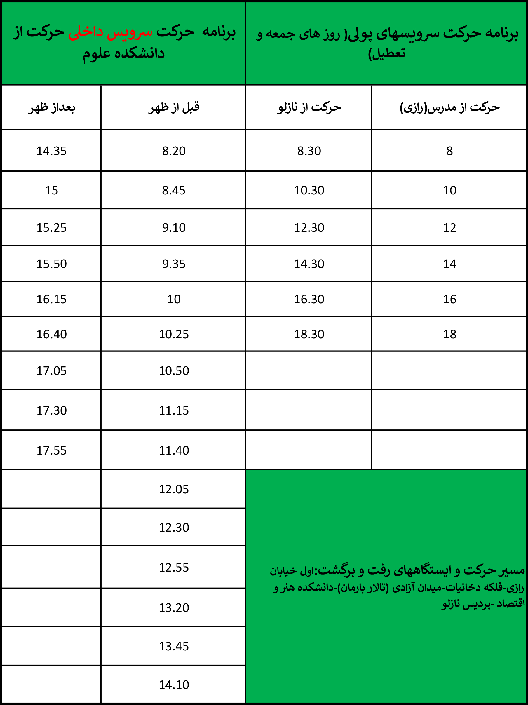 برنامه سرویس دانشجویی ترم پاییز دانشگاه ارومیه ارسال شده توسط : m.bagheri در تاریخ : دوشنبه, 5. آبان 1404 - 16:33تعداد مشاهده:12