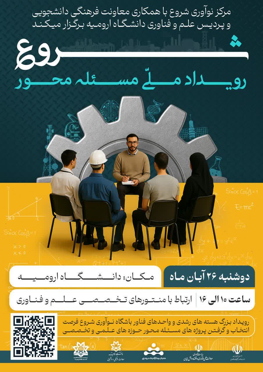 مرکز نوآوری شروع با همکاری معاونت فرهنگی دانشجویی و پردیس علم و فناوری دانشگاه ارومیه برگزار میکند: