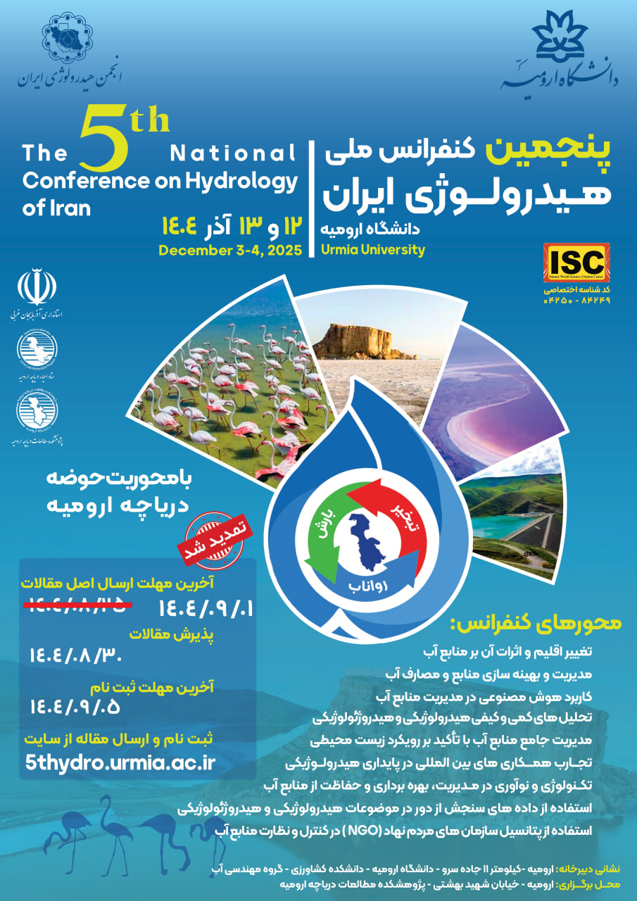 پنجمین همایش ملی "هیدرولوژی ایران" با محوریت ویژه احیای دریاچه ارومیه، به عنوان یکی از مهمترین رویدادهای علمی و تخصصی در حوزه مدیریت منابع آب و محیطزیست در این منطقه و در این بازه زمانی میباشد. این همایش با هدف بررسی چالشهای پیشروی دریاچه ارومیه و سایر منابع آبی کشور، گردهمایی اندیشمندان، متخصصان و پژوهشگران را فراهم میآورد تا با همفکری و تبادل دانش، راهکارهای علمی و عملی برای مقابله با این بحران ارائه دهند.